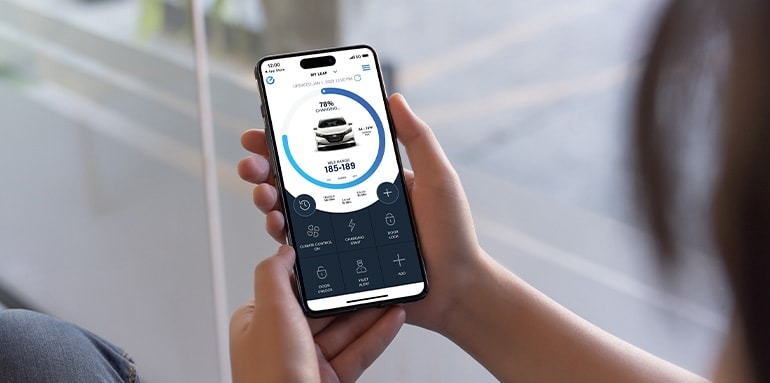 Designed exclusively for Nissan LEAF, the available NissanConnect® EV & Services app, powered by SiriusXM, gives you access to the unique features of your electric vehicle. You can lock your doors, sound the horn, flash your headlights, and turn on your climate control—all from a compatible smartphone.